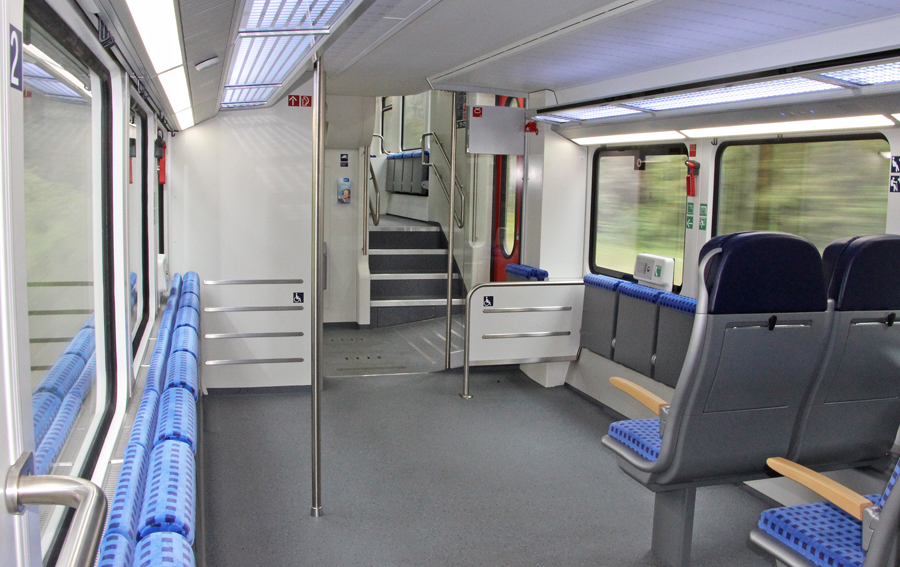 Besondere Ausstattung für mobilitätseingeschränkte Menschen: im Mittelwagen mit 1. Klasse im Unterdeck