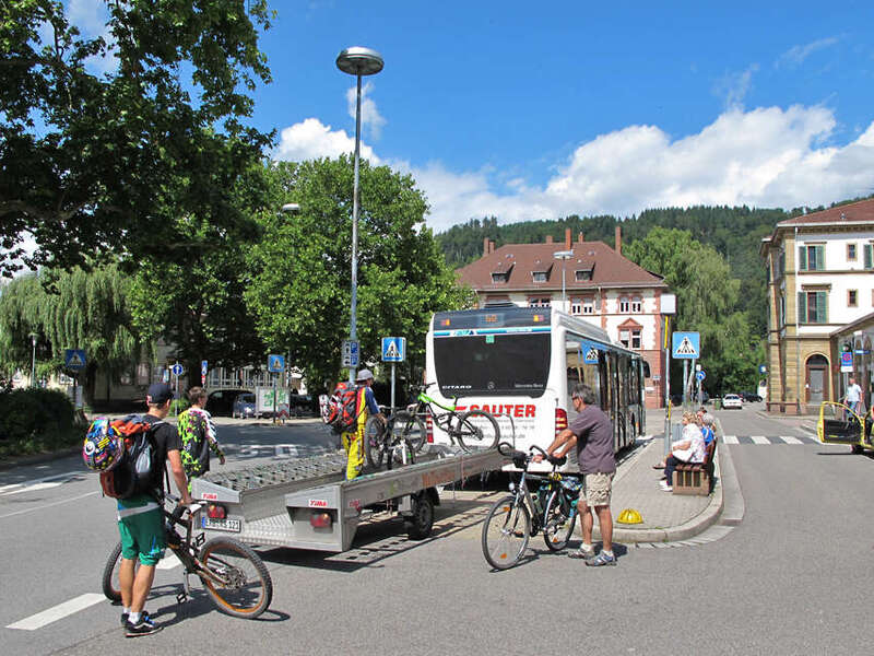 - Das Auf- und Abladen der Fahrräder an den genannten Haltestellen erfolgt ausschließlich durch den Fahrgast – selbstverständlich prüft das Personal aber vor der Weiterfahrt die ordnungsgemäße Sicherung der Ladung.