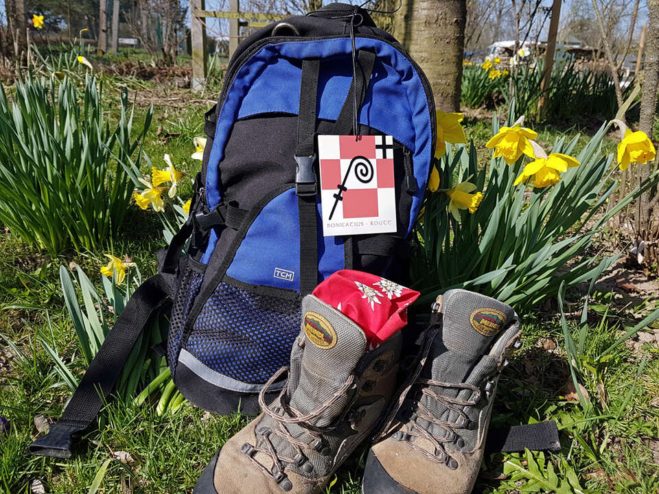 Die Wegmarkierung der Route erfolgt durch Wanderschilder, die das offizielle Logo der Bonifatius-Route zeigen.