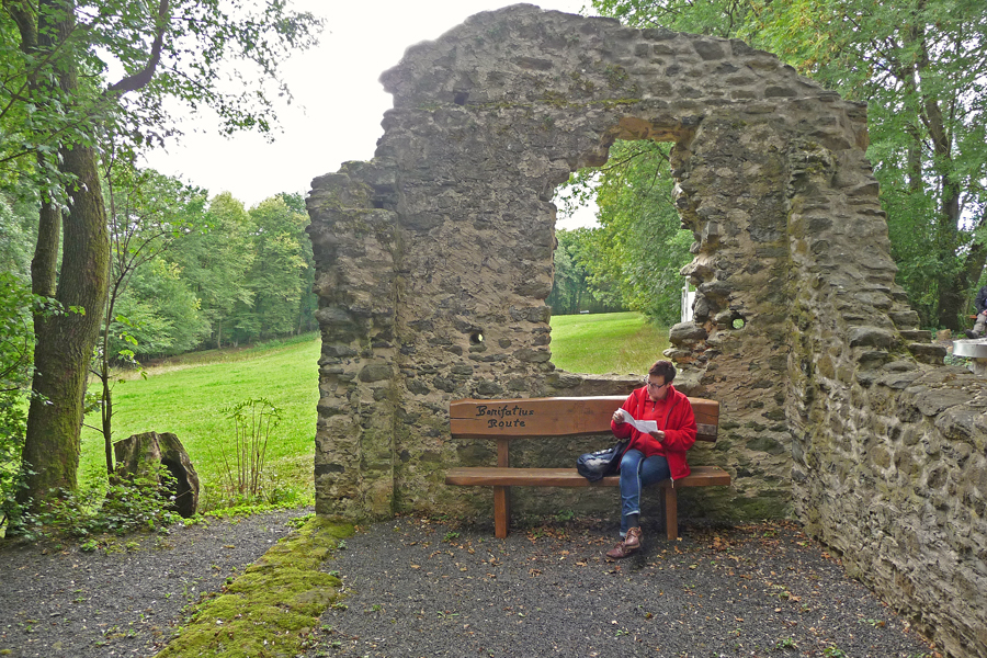 | 105 km | Nun beginnt ein Abschnitt, in dem die Route abseits größerer Orte führt. Auf dem historischen Ortesberg geht es bis zum Kleinheiligkreuz, einem idyllischen Platz, an dem der Leichenzug des Hl. Bonifatius eine Mittagsrast eingelegt haben soll. |