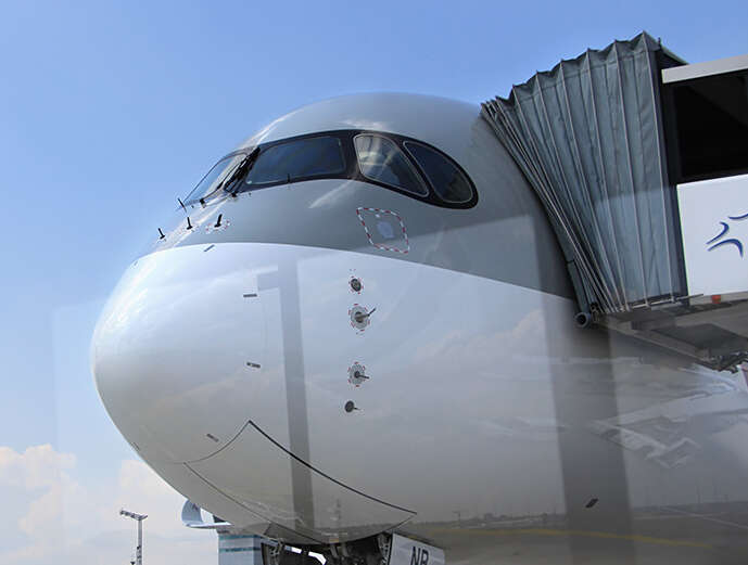 Auf der Tour gibt es von Cathay Pacific über Emirates bis zu Vietnam Airlines nicht nur Maschinen aller Nationalitäten zu sehen, sondern auch echte Raritäten: Den Airbus A350-1000 zum Beispiel, den es bislang erst dreimal auf der Welt gibt (und der mit seinen schwarz umrandeten Cockpit-Fenstern ein bisschen wie Zorro aussieht). Oder das größte Passagierflugzeug der Welt: Den Airbus A380, der so hoch ist wie ein sechsstöckiges Haus.