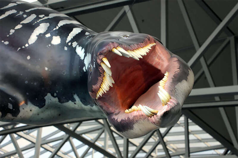 Achtung, Reißzähne im Tiefflug! Eine schaurig-schöne Überraschung wartet auf dem Rückweg von der Besucherterasse zur SkyLine-Station am Terminal 2: Die lebensgroßen Saurier-Modelle, die da plötzlich von der Decke hängen, sind Teil einer Ausstellung über die Evolution des Fluges, die in Kooperation mit dem Naturmuseum Senckenberg zu sehen ist.