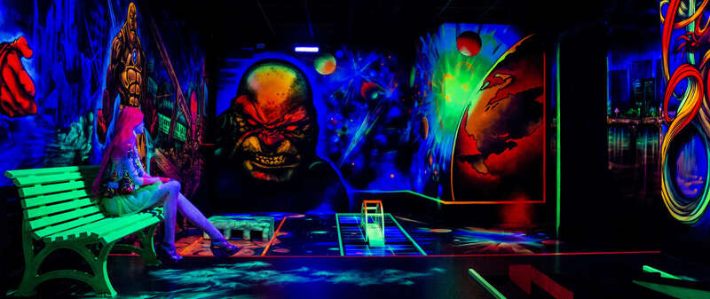 Einmaliges Minigolferlebnis unter Schwarzlicht