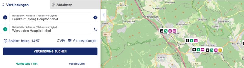Geben Sie in der Fahrplanauskunft die Verbindung ein, die Sie genutzt haben, als ihr Gegenstand verloren ging.