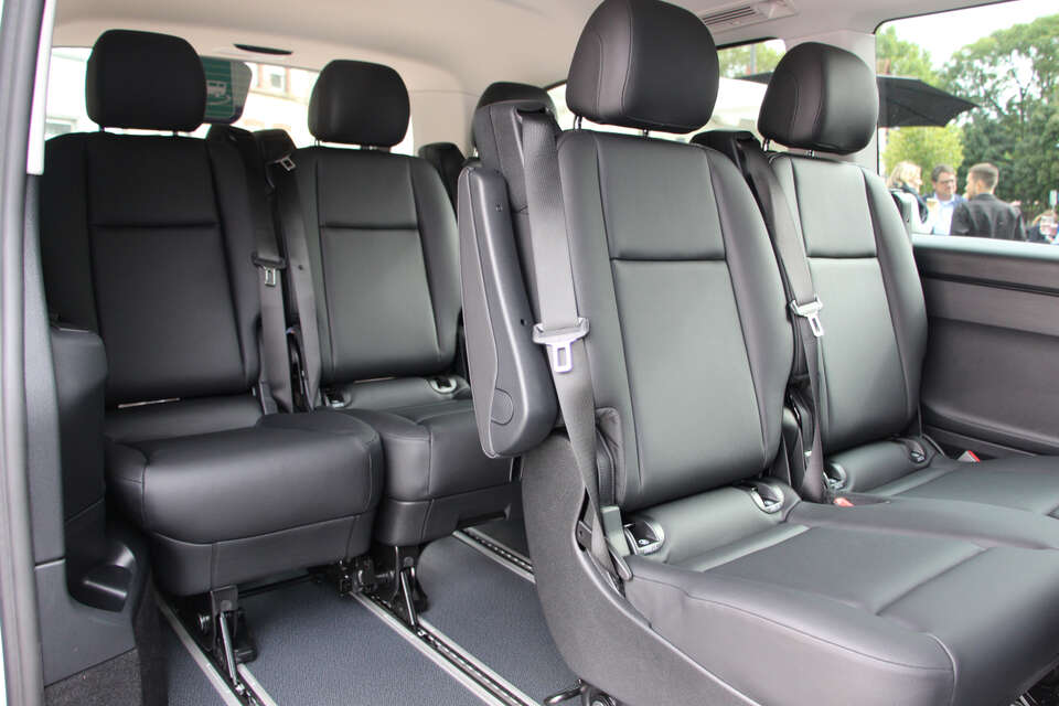 Die elektrischen Kleinbusse bieten fünf Sitzplätze. Der Ein- und Ausstieg erfolgt komfortabel über große seitliche Schiebetüren. Der Innenraum ist großzügig gestaltet, sodass beim Ein- und Ausstieg keine Sitze umgeklappt werden müssen.
