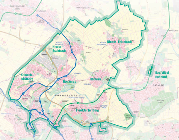 - S-Bahn-Stationen Berkersheim, Eschersheim und Frankfurter Berg