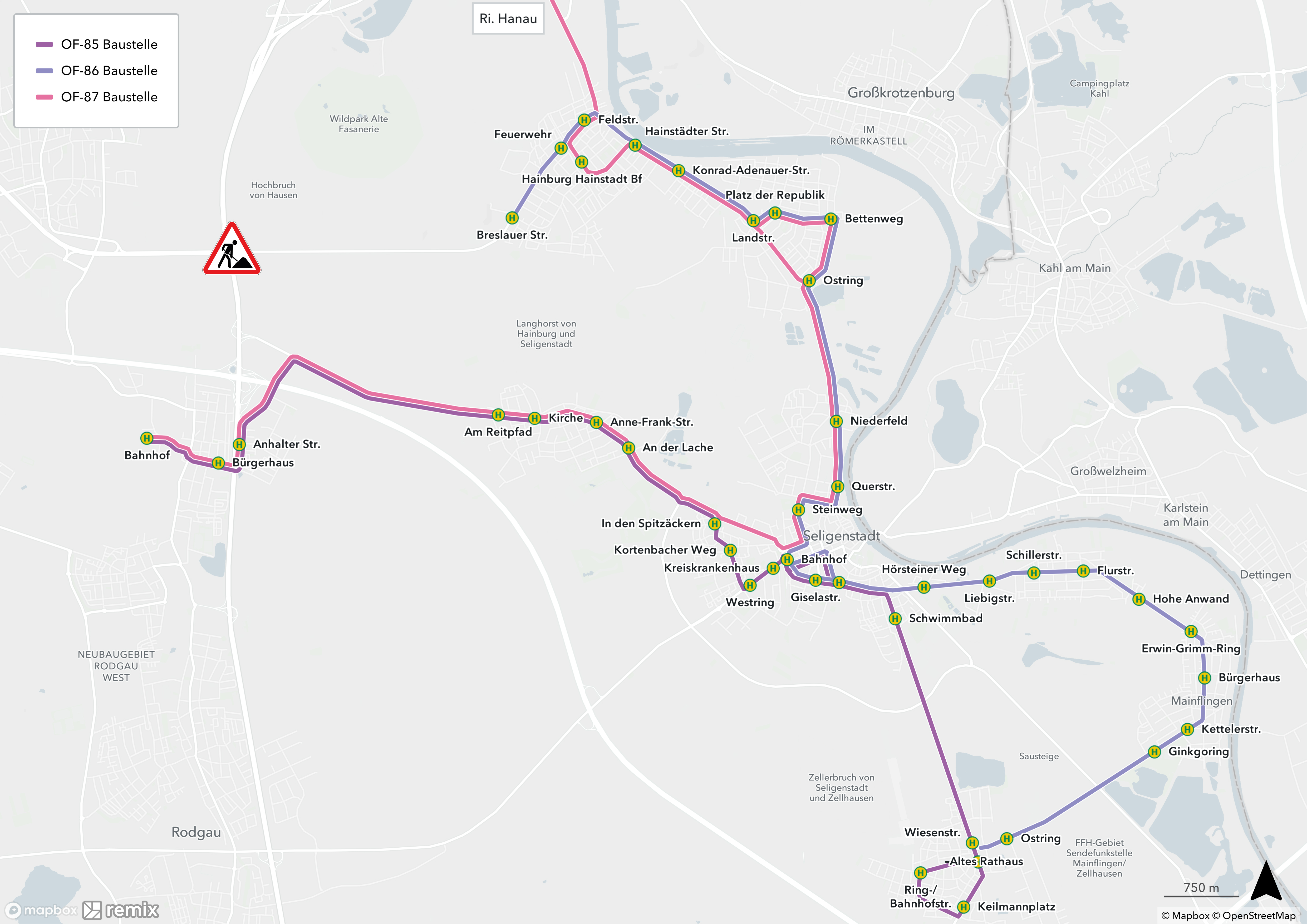 Umleitungen und Haltestellenentfall auf den Buslinien OF-85, OF-86, OF-87 und X64
