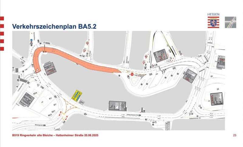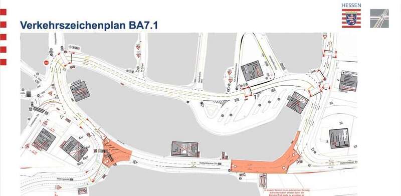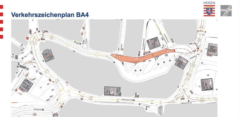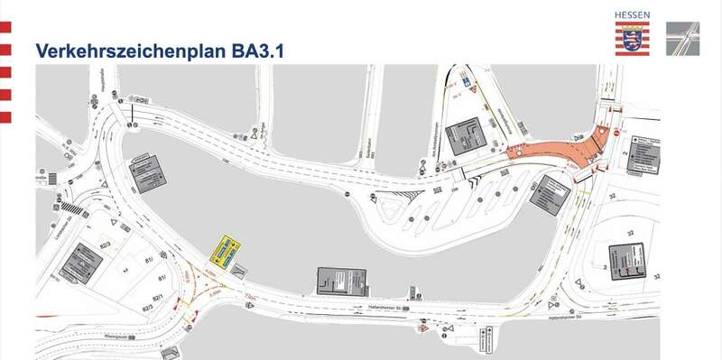 Bauabschnitt 1 beginnt am Mittwoch, den 22. Oktober 2025. Gesperrt wird die Hattersheimer Straße zwischen der Rheingaubrücke und der Ausfahrt zum DB-Parkhaus. Während dieser etwa achtwöchigen Vollsperrung wird der Verkehr auf der Rheingaubrücke mit einer Ampelanlage geregelt. Fahrzeuge aus Marxheim werden nach links in den Ringverkehr geführt. Für die Busse bleibt die Zufahrt zum ZOB möglich, dafür wird die Einbahnregelung in der Kirschgartenstraße umgekehrt.