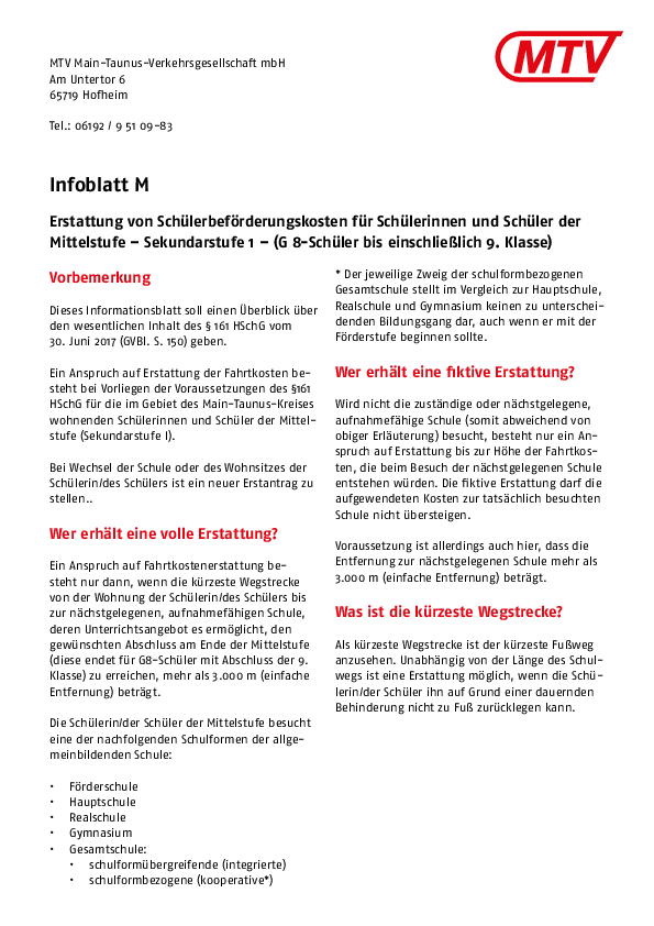 Infoblatt Fahrtkostenerstattung Mittelstufe