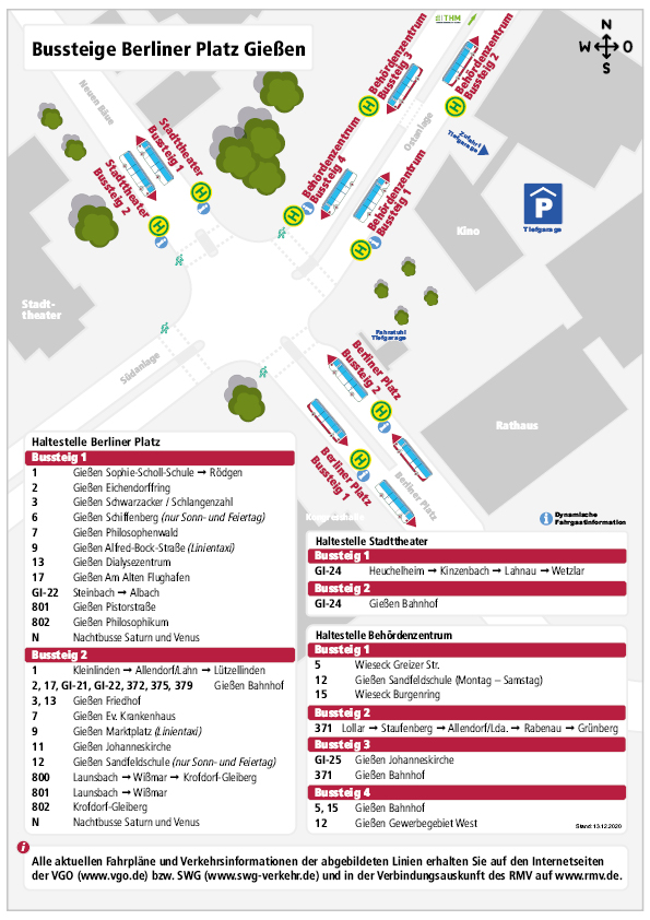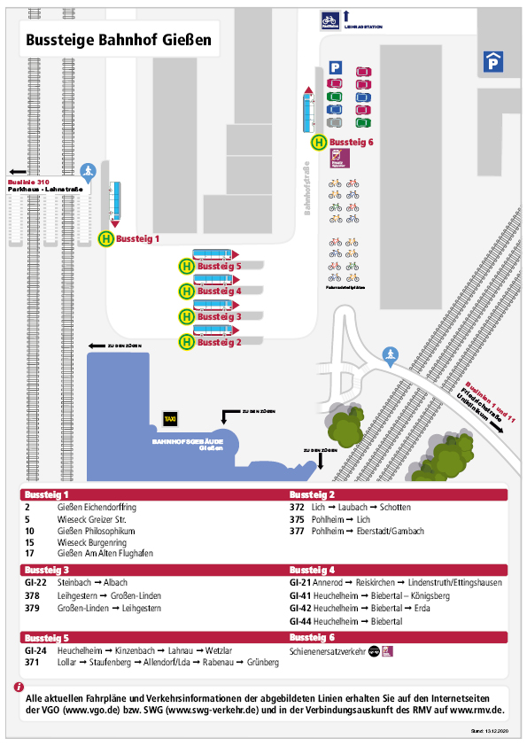 Folgend finden Sie von ausgewählten Busbahnhöfen im Gebiet der VGO die Lagepläne der Haltestellen mit Angabe der Liniennummern.