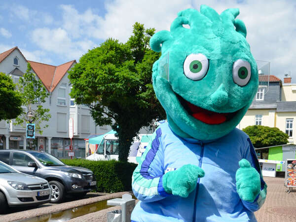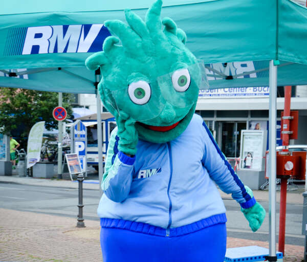 "Ui, lass mich überlegen. Wir hatten zum 20-jährigen Jubiläum 2015 ja eine große Tour, da war ich total viel unterwegs: in Frankfurt, Marburg, Hofheim, ach und in Obertshausen und Alsfeld, in Hochheim ... da war überall ordentlich was los. Das absolute Highlight war natürlich das große Bürgerfest zum Tag der Deutschen Einheit in Frankfurt. Da haben wir drei Tage lang richtig gefeiert und Spaß gehabt - vor allem Dance-Mob, bei dem total viele Leute mit mir den BuBa-Tanz zum RMV-Songgemacht haben. Das war spitze! Eigentlich war das fast wie eine Deutschland-Tour von einem Rockstar, nur haben wir eben eine RMV-Tour gemacht, mit mir, dem RMV-Star!"