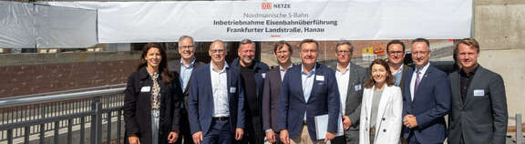 Mit einem gemeinsamen Festakt haben die Deutsche Bahn (DB), das Land Hessen, die Stadt Hanau und der Rhein-Main-Verkehrsverbund (RMV) die Eisenbahnüberführung an der Frankfurter Landstraße in Hanau in Betrieb genommen. Statt über die Gleise führen die Fahrspuren ab sofort unter der Bahnlinie hindurch.